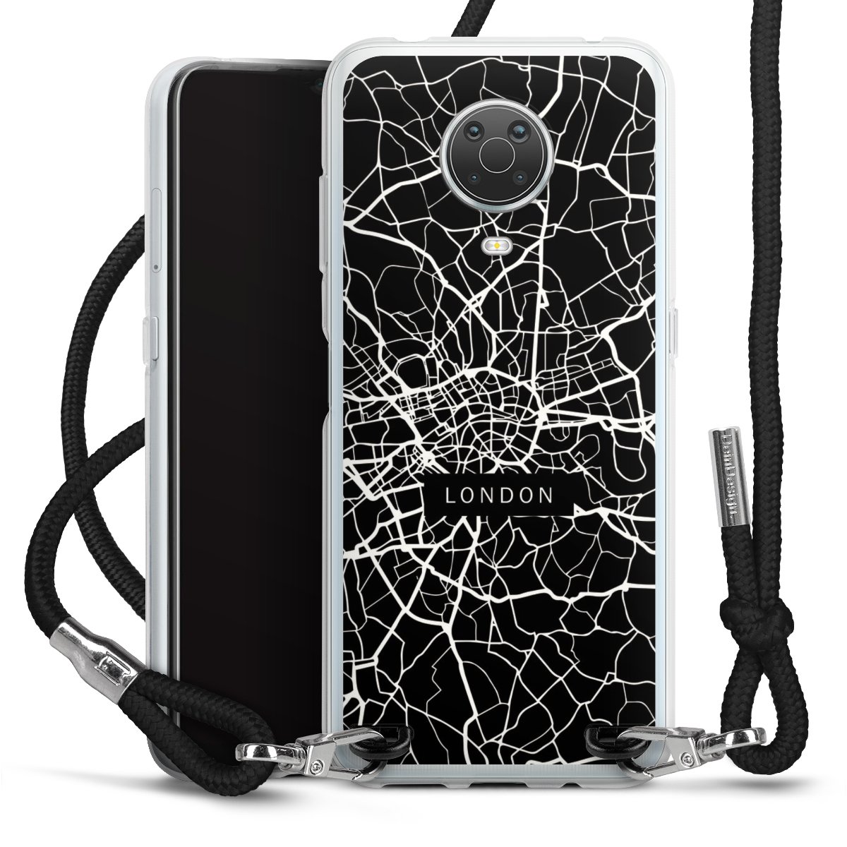 Die transparente Silikonhülle besteht aus flexiblen TPU (thermoplastisches Polyurethan) und bietet zugleich robusten Schutz. Durch das langlebige, bruchsichere Material ist die Hülle biegsam und formbeständig zugleich. Das stylische Trend-Accessoire liegt griffig in der Hand und wird optimal von der Handykette aus Stoff (Polyester) ergänzt. Das geflochtene Stoffband ist ca. 1,70 Meter lang mit einem Durchmesser von ca. 0,5cm. Aufgrund der besonderen Knotentechnik ist das Band durch einfaches Ziehen in der Länge verstellbar, damit Du es individuell nach Deinen Wünschen anpassen kannst. Das praktische Case zum Umhängen ist mit dem Stoffband in den Farben Schwarz, Rot, Rosa, Grau, Senfgelb, Bordeaux und Royalblau erhältlich. Die Enden des Stoffbandes sind mit metallischen Endkappen umfasst und somit sicher vor dem Ausfransen geschützt.