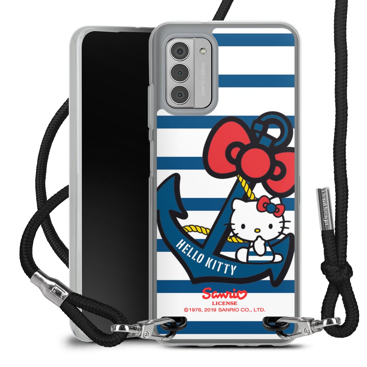 Habe Dein Handy, dank der flexiblen Silikon Handyhülle zum Umhängen mit der Handykette aus Stoff, immer griffbereit.