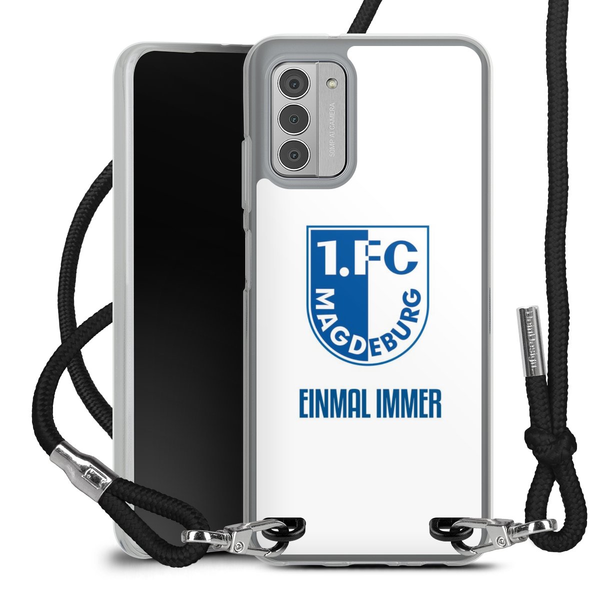 Habe Dein Handy, dank der flexiblen Silikon Handyhülle zum Umhängen mit der Handykette aus Stoff, immer griffbereit.
