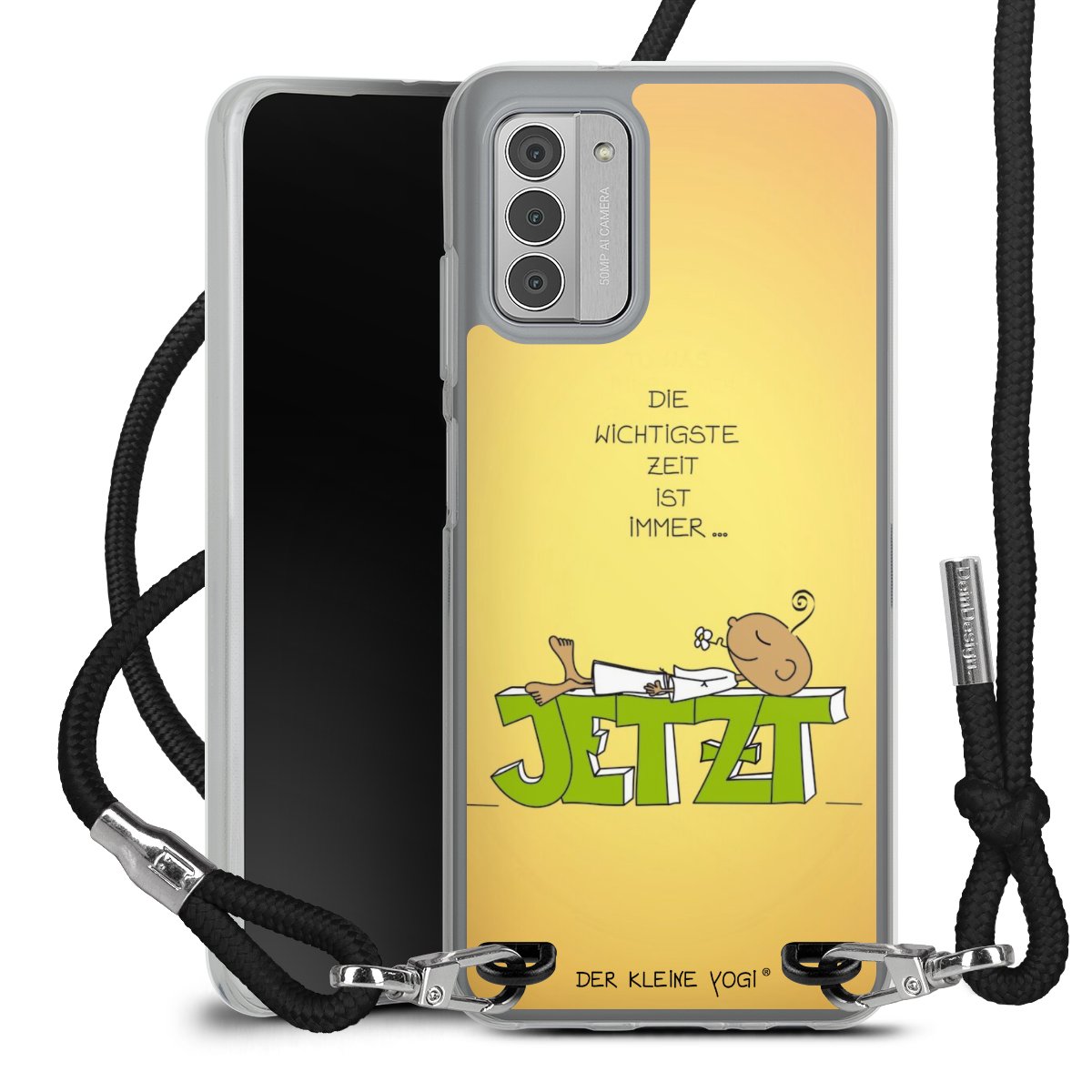 Habe Dein Handy, dank der flexiblen Silikon Handyhülle zum Umhängen mit der Handykette aus Stoff, immer griffbereit.
