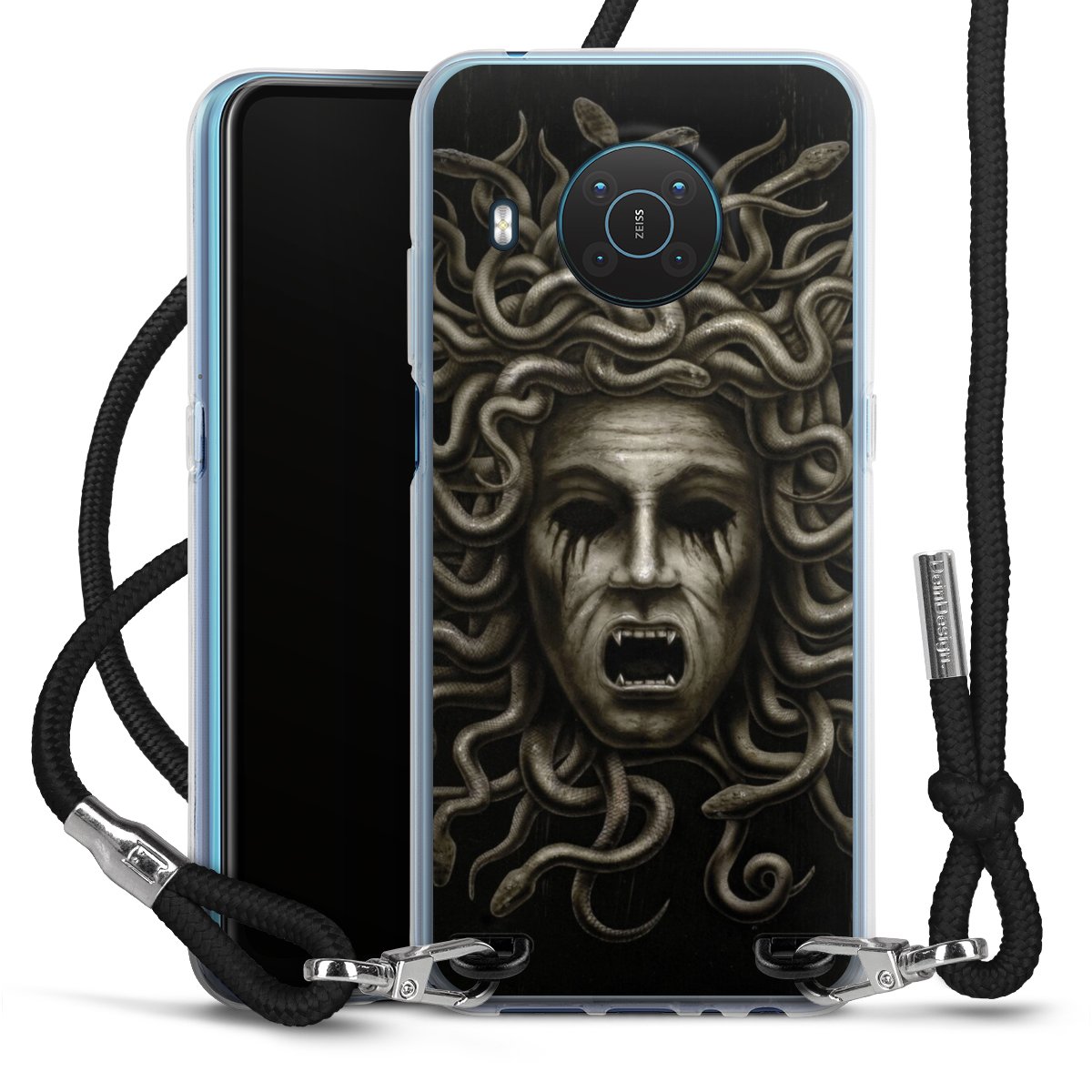 Bei dieser Handyhülle nutzen wir das solide Direktdruck-Verfahren, weshalb der Druckbereich ausschließlich die Rückseite umfasst und der Rand hingegen unbedruckt bleibt. Das Case zum Umhängen kann sowohl unbedruckt, als auch vollflächig oder partiell bedruckt bestellt werden. Wähle für Dein Design entweder eines unserer exklusiven Shop-Motive, oder werde kreativ und gestalte Dein Wunschdesign zum Beispiel mit Fotos und Overlays selbst. Designe Dir Dein persönliches Trend-Accessoire und setze ein individuelles Statement auf den Straßen!