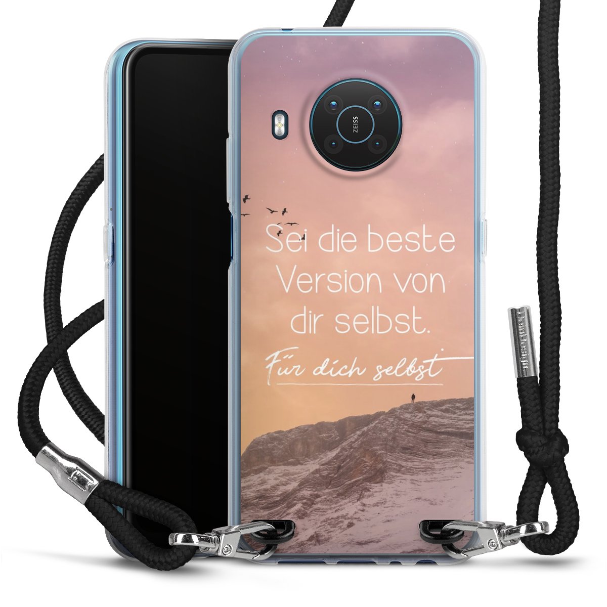 Bei dieser Handyhülle nutzen wir das solide Direktdruck-Verfahren, weshalb der Druckbereich ausschließlich die Rückseite umfasst und der Rand hingegen unbedruckt bleibt. Das Case zum Umhängen kann sowohl unbedruckt, als auch vollflächig oder partiell bedruckt bestellt werden. Wähle für Dein Design entweder eines unserer exklusiven Shop-Motive, oder werde kreativ und gestalte Dein Wunschdesign zum Beispiel mit Fotos und Overlays selbst. Designe Dir Dein persönliches Trend-Accessoire und setze ein individuelles Statement auf den Straßen!