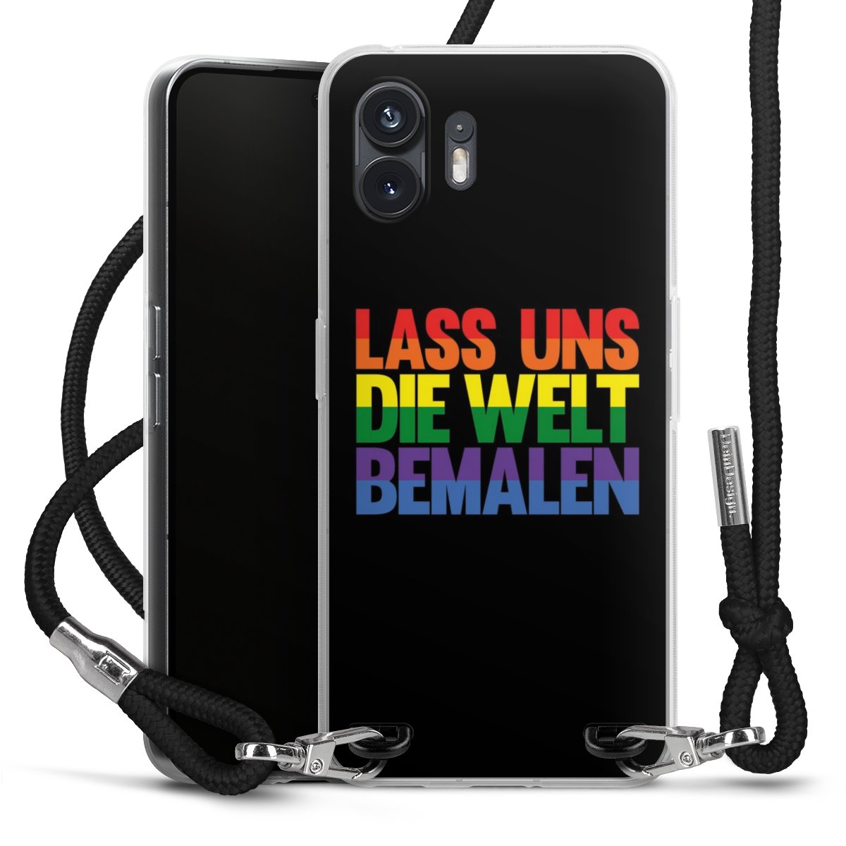 Bei dieser Handyhülle nutzen wir das solide Direktdruck-Verfahren, weshalb der Druckbereich ausschließlich die Rückseite umfasst und der Rand hingegen unbedruckt bleibt. Das Case zum Umhängen kann sowohl unbedruckt, als auch vollflächig oder partiell bedruckt bestellt werden. Wähle für Dein Design entweder eines unserer exklusiven Shop-Motive, oder werde kreativ und gestalte Dein Wunschdesign zum Beispiel mit Fotos und Overlays selbst. Designe Dir Dein persönliches Trend-Accessoire und setze ein individuelles Statement auf den Straßen!