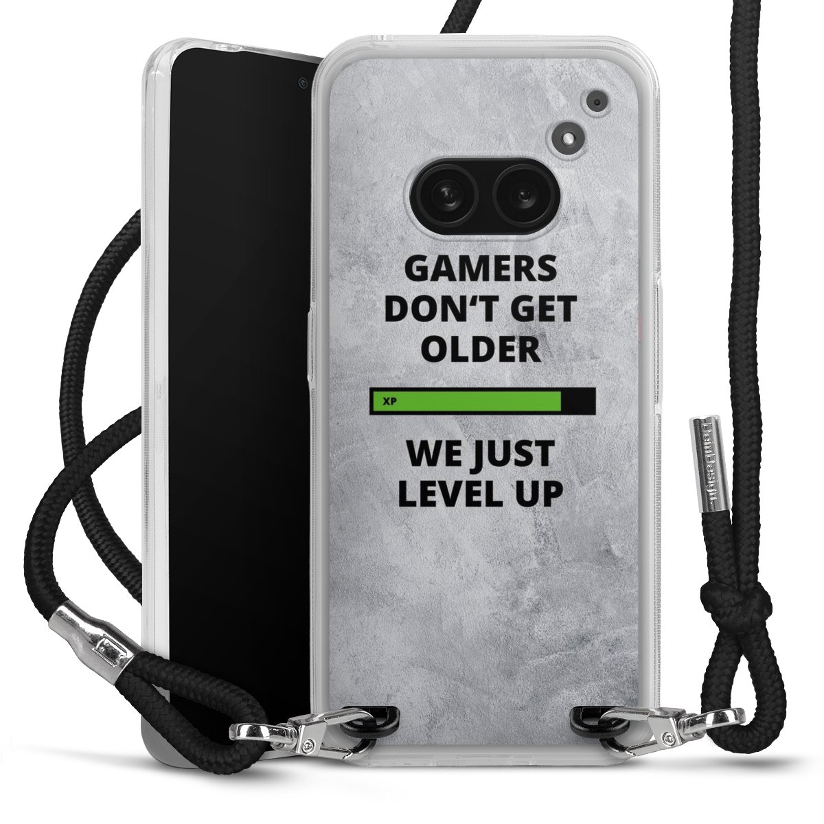 Habe Dein Handy, dank der flexiblen Silikon Handyhülle zum Umhängen mit der Handykette aus Stoff, immer griffbereit.