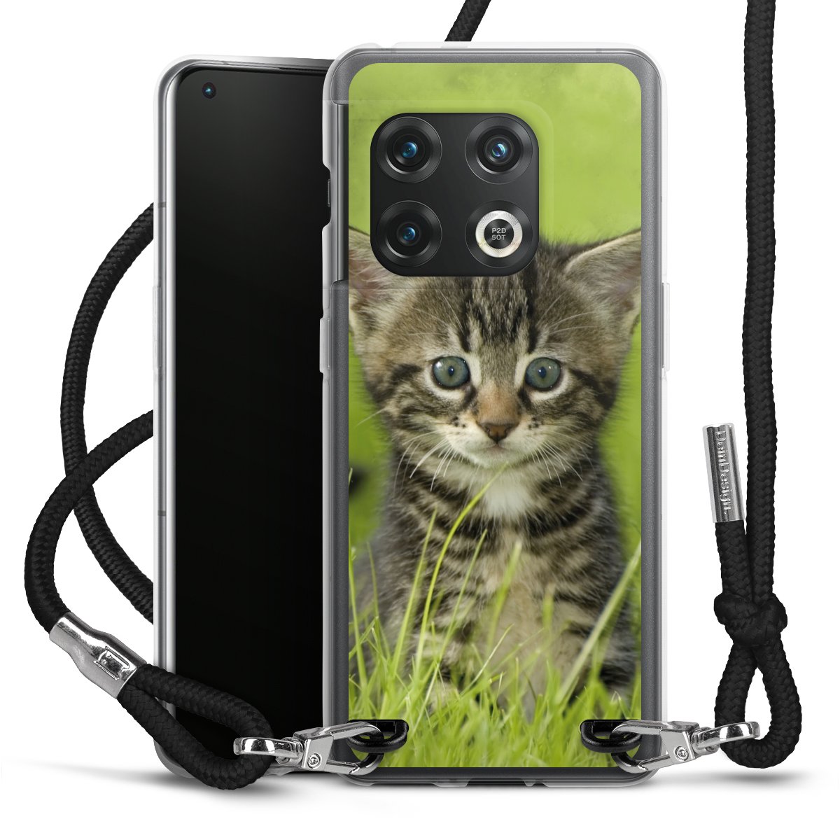 Habe Dein Handy, dank der flexiblen Silikon Handyhülle zum Umhängen mit der Handykette aus Stoff, immer griffbereit.