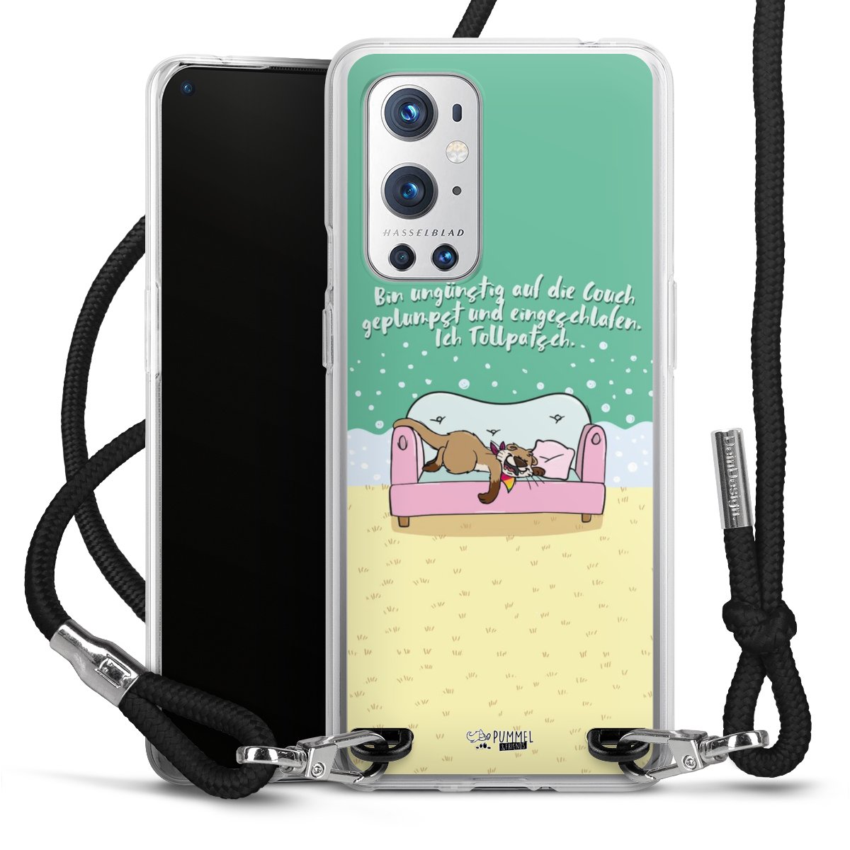 Habe Dein Handy, dank der flexiblen Silikon Handyhülle zum Umhängen mit der Handykette aus Stoff, immer griffbereit.