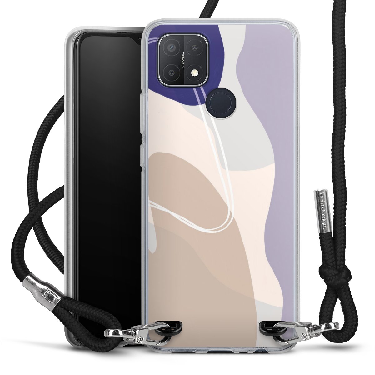 Habe Dein Handy, dank der flexiblen Silikon Handyhülle zum Umhängen mit der Handykette aus Stoff, immer griffbereit.