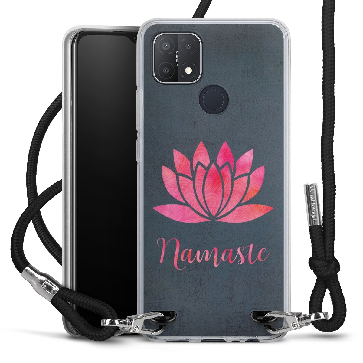 Habe Dein Handy, dank der flexiblen Silikon Handyhülle zum Umhängen mit der Handykette aus Stoff, immer griffbereit.