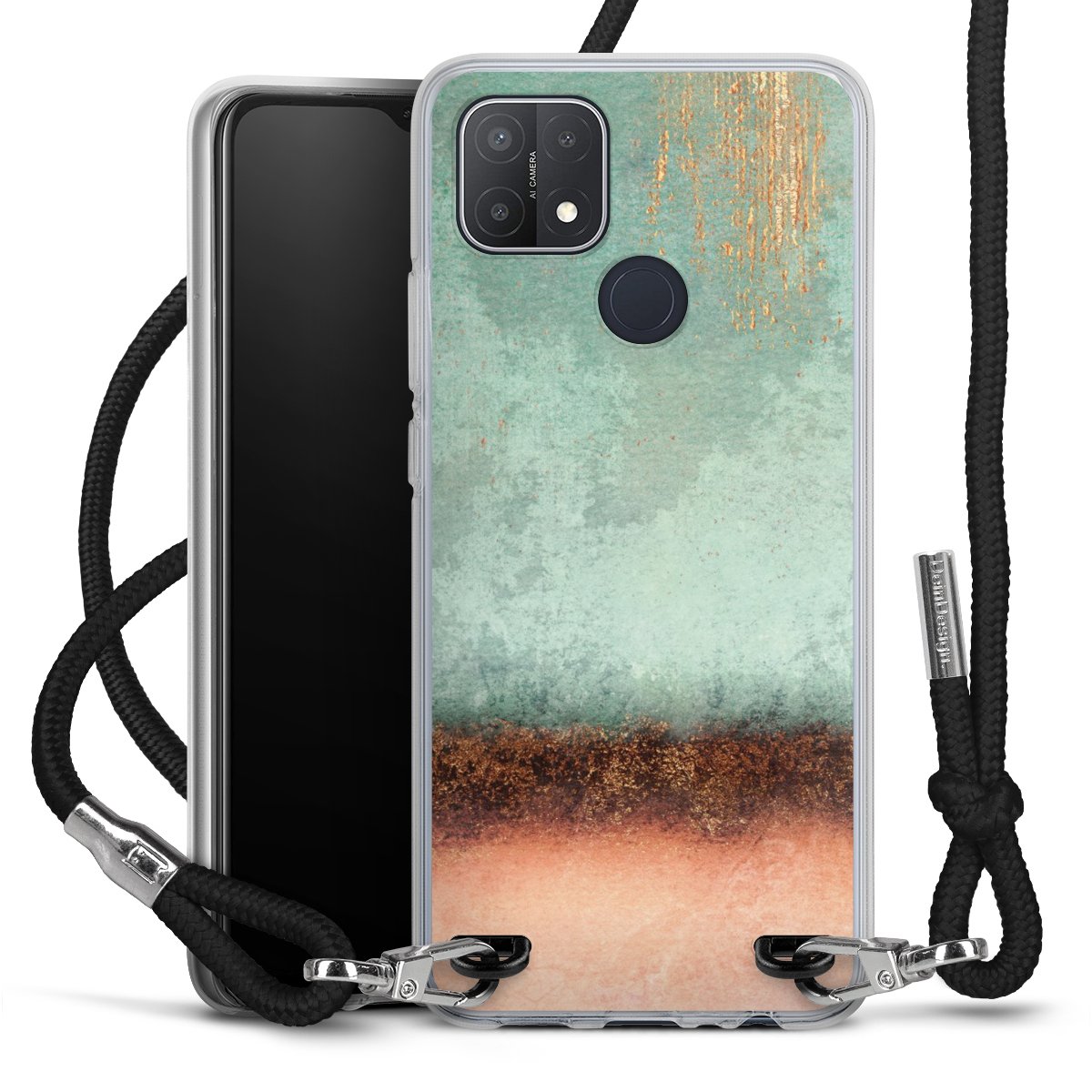 Habe Dein Handy, dank der flexiblen Silikon Handyhülle zum Umhängen mit der Handykette aus Stoff, immer griffbereit.