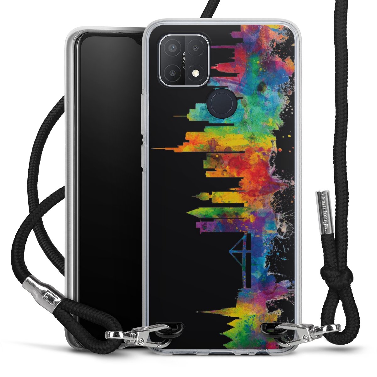 Bei dieser Handyhülle nutzen wir das solide Direktdruck-Verfahren, weshalb der Druckbereich ausschließlich die Rückseite umfasst und der Rand hingegen unbedruckt bleibt. Das Case zum Umhängen kann sowohl unbedruckt, als auch vollflächig oder partiell bedruckt bestellt werden. Wähle für Dein Design entweder eines unserer exklusiven Shop-Motive, oder werde kreativ und gestalte Dein Wunschdesign zum Beispiel mit Fotos und Overlays selbst. Designe Dir Dein persönliches Trend-Accessoire und setze ein individuelles Statement auf den Straßen!