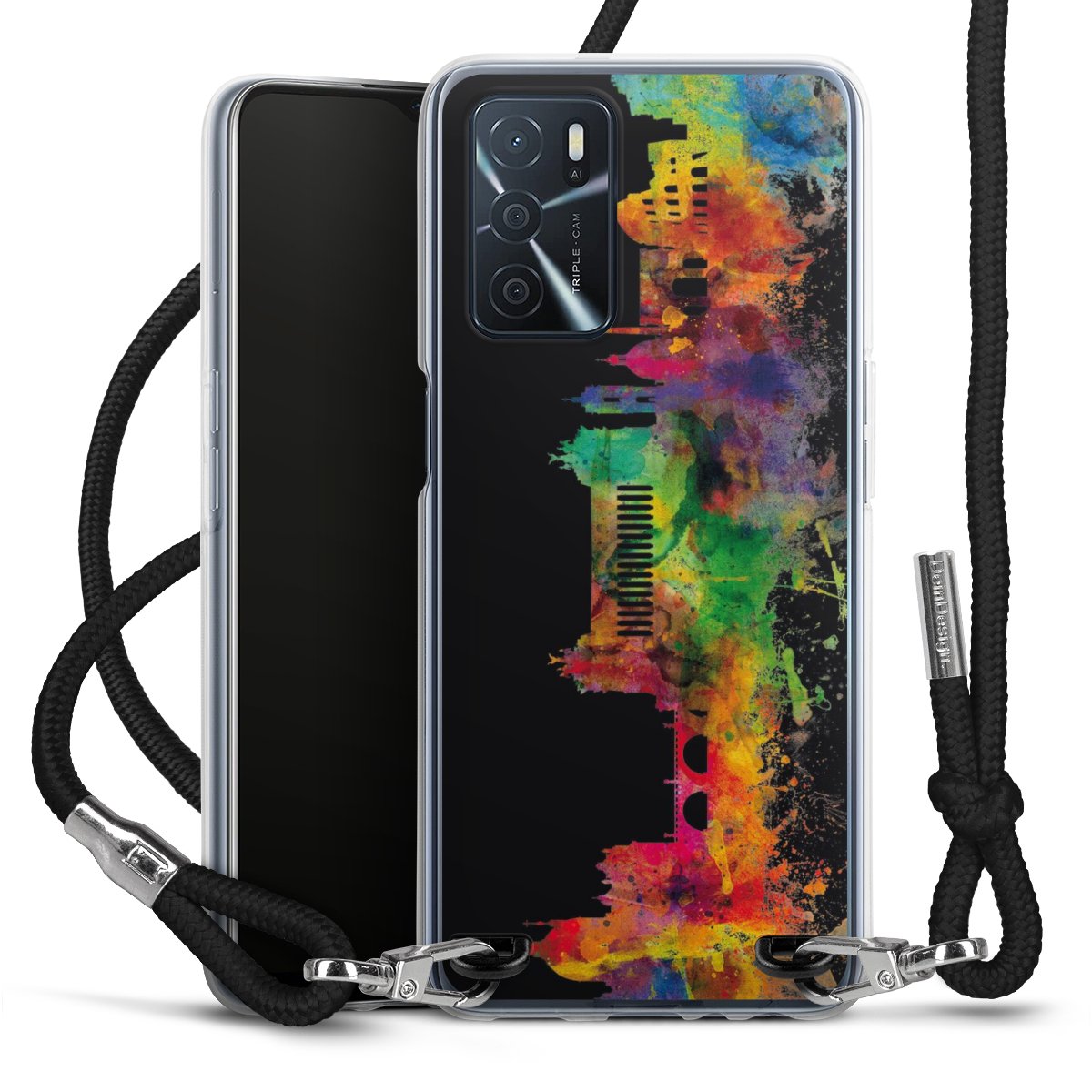 Bei dieser Handyhülle nutzen wir das solide Direktdruck-Verfahren, weshalb der Druckbereich ausschließlich die Rückseite umfasst und der Rand hingegen unbedruckt bleibt. Das Case zum Umhängen kann sowohl unbedruckt, als auch vollflächig oder partiell bedruckt bestellt werden. Wähle für Dein Design entweder eines unserer exklusiven Shop-Motive, oder werde kreativ und gestalte Dein Wunschdesign zum Beispiel mit Fotos und Overlays selbst. Designe Dir Dein persönliches Trend-Accessoire und setze ein individuelles Statement auf den Straßen!
