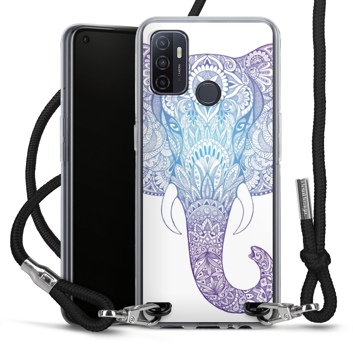 Die transparente Silikonhülle besteht aus flexiblen TPU (thermoplastisches Polyurethan) und bietet zugleich robusten Schutz. Durch das langlebige, bruchsichere Material ist die Hülle biegsam und formbeständig zugleich. Das stylische Trend-Accessoire liegt griffig in der Hand und wird optimal von der Handykette aus Stoff (Polyester) ergänzt. Das geflochtene Stoffband ist ca. 1,70 Meter lang mit einem Durchmesser von ca. 0,5cm. Aufgrund der besonderen Knotentechnik ist das Band durch einfaches Ziehen in der Länge verstellbar, damit Du es individuell nach Deinen Wünschen anpassen kannst. Das praktische Case zum Umhängen ist mit dem Stoffband in den Farben Schwarz, Rot, Rosa, Grau, Senfgelb, Bordeaux und Royalblau erhältlich. Die Enden des Stoffbandes sind mit metallischen Endkappen umfasst und somit sicher vor dem Ausfransen geschützt.
