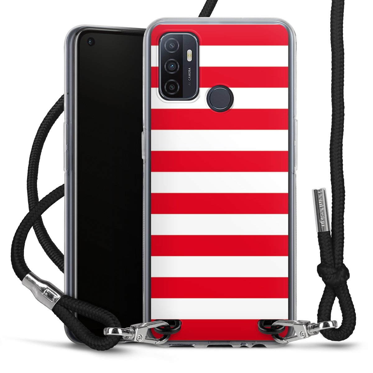 Die transparente Silikonhülle besteht aus flexiblen TPU (thermoplastisches Polyurethan) und bietet zugleich robusten Schutz. Durch das langlebige, bruchsichere Material ist die Hülle biegsam und formbeständig zugleich. Das stylische Trend-Accessoire liegt griffig in der Hand und wird optimal von der Handykette aus Stoff (Polyester) ergänzt. Das geflochtene Stoffband ist ca. 1,70 Meter lang mit einem Durchmesser von ca. 0,5cm. Aufgrund der besonderen Knotentechnik ist das Band durch einfaches Ziehen in der Länge verstellbar, damit Du es individuell nach Deinen Wünschen anpassen kannst. Das praktische Case zum Umhängen ist mit dem Stoffband in den Farben Schwarz, Rot, Rosa, Grau, Senfgelb, Bordeaux und Royalblau erhältlich. Die Enden des Stoffbandes sind mit metallischen Endkappen umfasst und somit sicher vor dem Ausfransen geschützt.