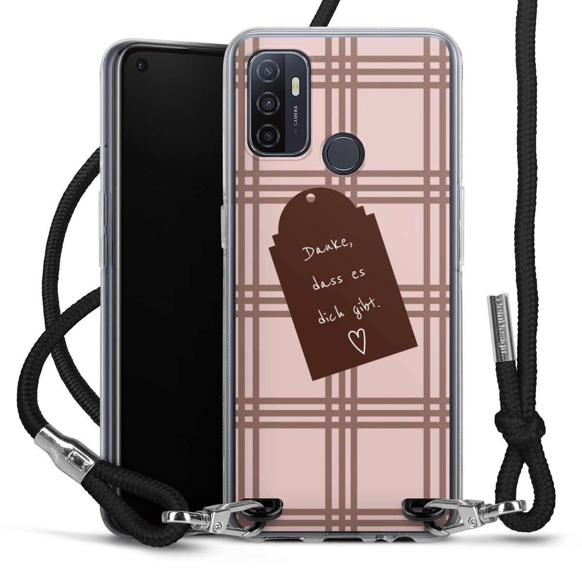 Habe Dein Handy, dank der flexiblen Silikon Handyhülle zum Umhängen mit der Handykette aus Stoff, immer griffbereit.