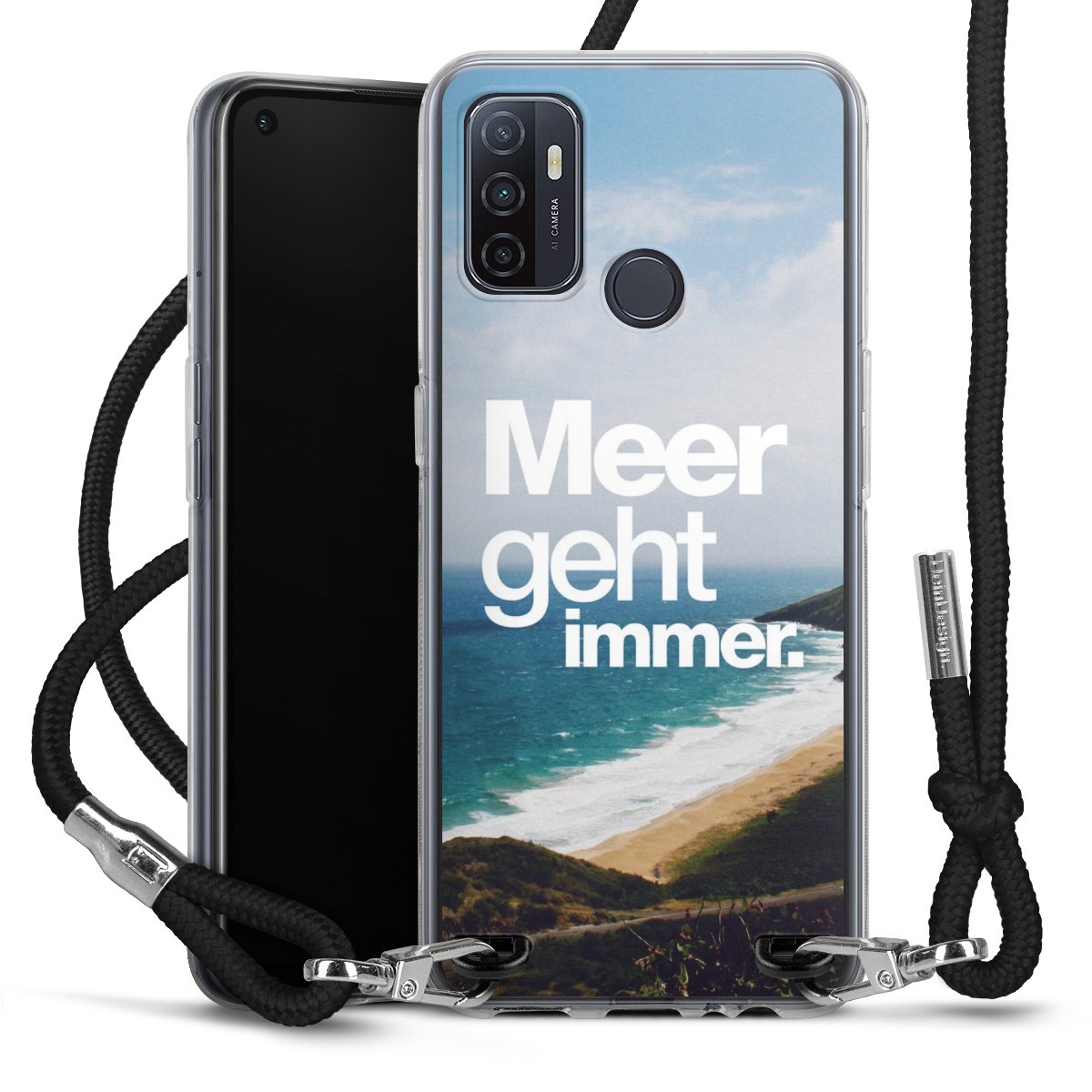Bei dieser Handyhülle nutzen wir das solide Direktdruck-Verfahren, weshalb der Druckbereich ausschließlich die Rückseite umfasst und der Rand hingegen unbedruckt bleibt. Das Case zum Umhängen kann sowohl unbedruckt, als auch vollflächig oder partiell bedruckt bestellt werden. Wähle für Dein Design entweder eines unserer exklusiven Shop-Motive, oder werde kreativ und gestalte Dein Wunschdesign zum Beispiel mit Fotos und Overlays selbst. Designe Dir Dein persönliches Trend-Accessoire und setze ein individuelles Statement auf den Straßen!