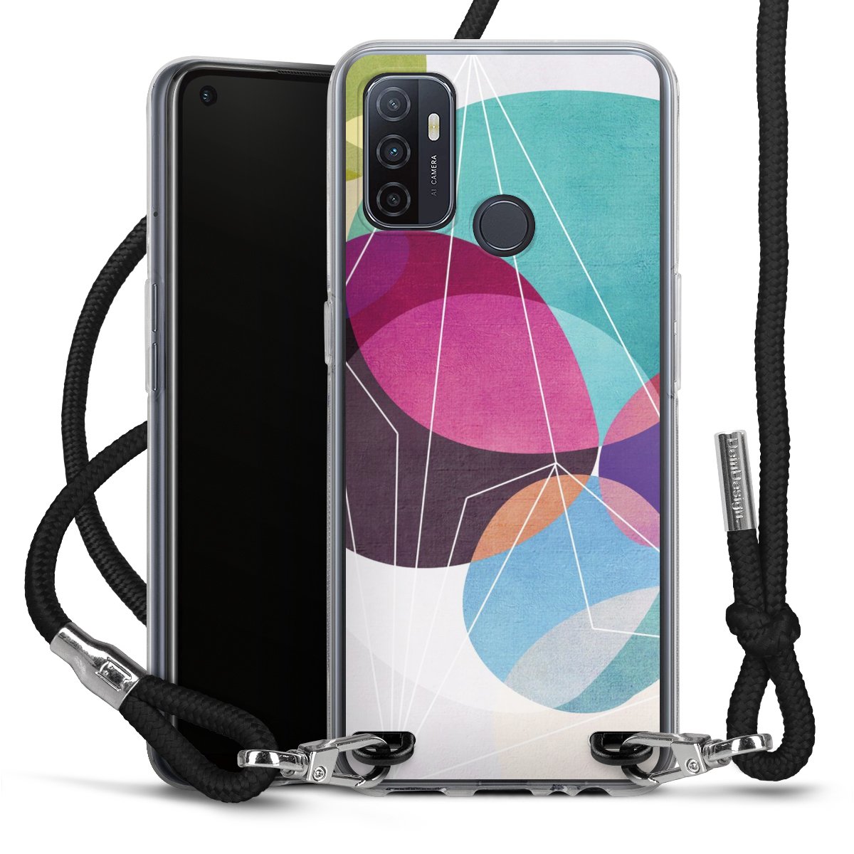 Habe Dein Handy, dank der flexiblen Silikon Handyhülle zum Umhängen mit der Handykette aus Stoff, immer griffbereit.