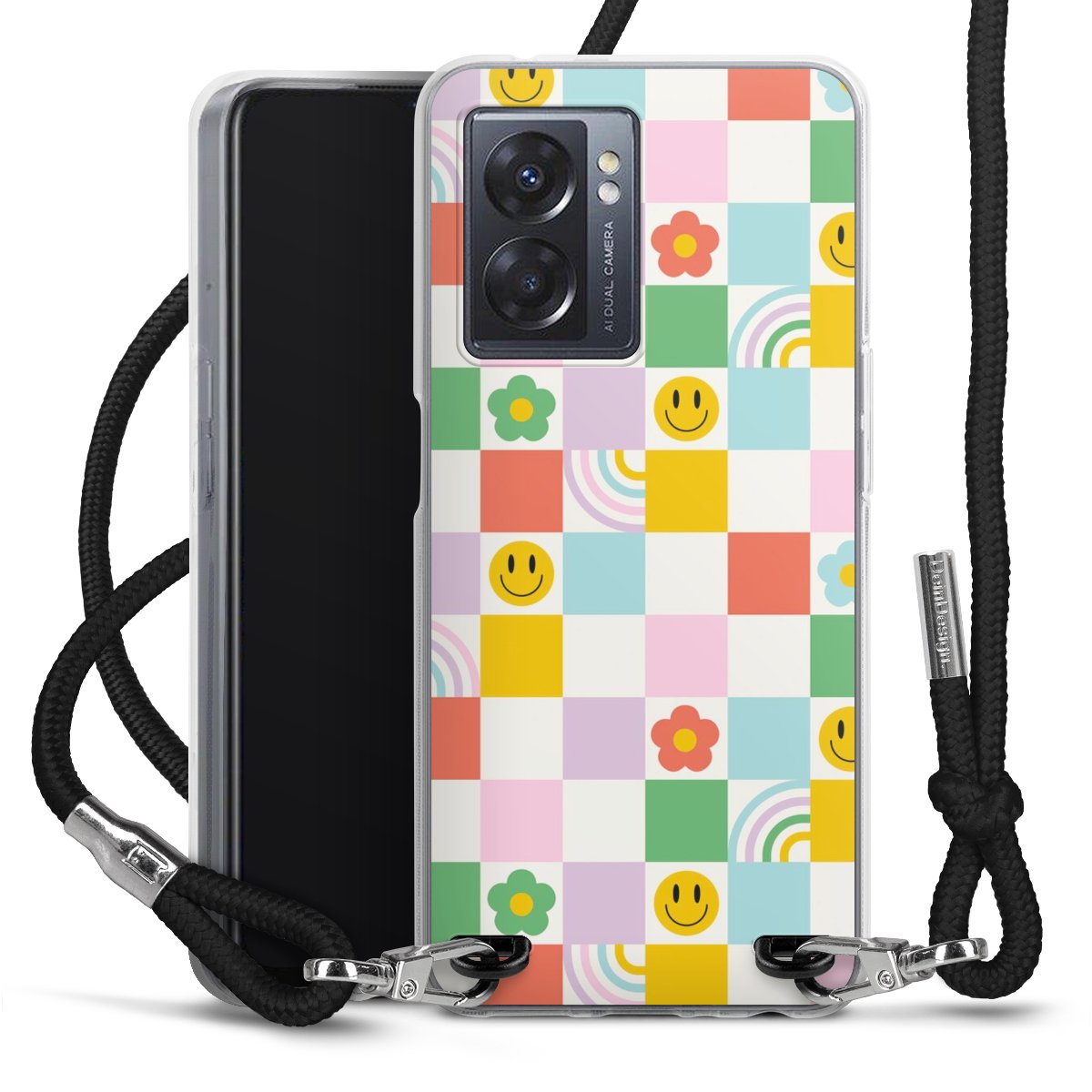 Bei dieser Handyhülle nutzen wir das solide Direktdruck-Verfahren, weshalb der Druckbereich ausschließlich die Rückseite umfasst und der Rand hingegen unbedruckt bleibt. Das Case zum Umhängen kann sowohl unbedruckt, als auch vollflächig oder partiell bedruckt bestellt werden. Wähle für Dein Design entweder eines unserer exklusiven Shop-Motive, oder werde kreativ und gestalte Dein Wunschdesign zum Beispiel mit Fotos und Overlays selbst. Designe Dir Dein persönliches Trend-Accessoire und setze ein individuelles Statement auf den Straßen!