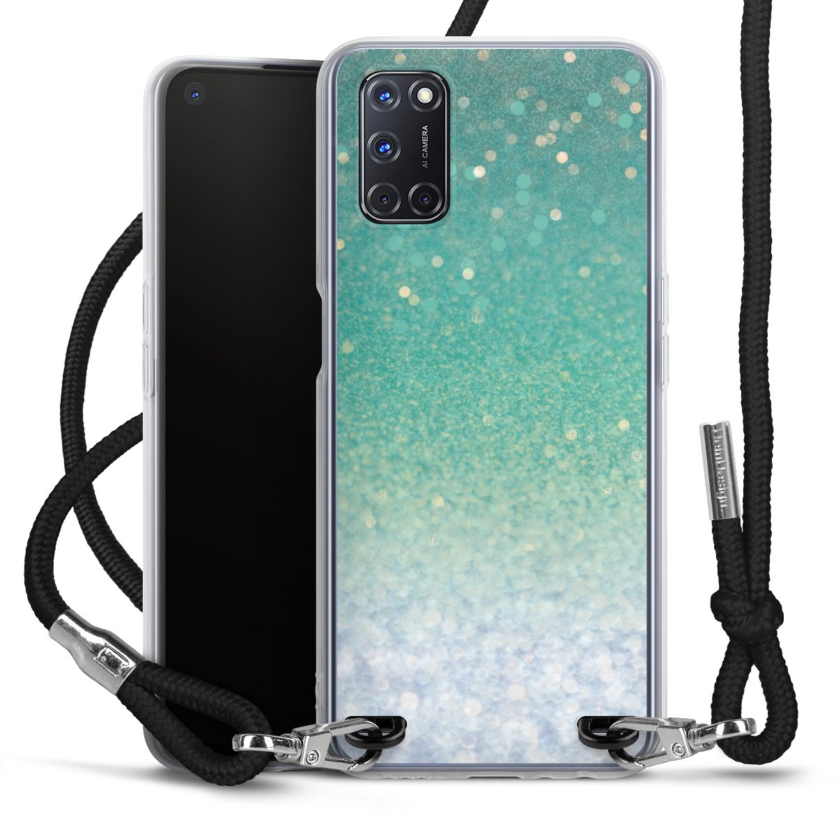 Die transparente Silikonhülle besteht aus flexiblen TPU (thermoplastisches Polyurethan) und bietet zugleich robusten Schutz. Durch das langlebige, bruchsichere Material ist die Hülle biegsam und formbeständig zugleich. Das stylische Trend-Accessoire liegt griffig in der Hand und wird optimal von der Handykette aus Stoff (Polyester) ergänzt. Das geflochtene Stoffband ist ca. 1,70 Meter lang mit einem Durchmesser von ca. 0,5cm. Aufgrund der besonderen Knotentechnik ist das Band durch einfaches Ziehen in der Länge verstellbar, damit Du es individuell nach Deinen Wünschen anpassen kannst. Das praktische Case zum Umhängen ist mit dem Stoffband in den Farben Schwarz, Rot, Rosa, Grau, Senfgelb, Bordeaux und Royalblau erhältlich. Die Enden des Stoffbandes sind mit metallischen Endkappen umfasst und somit sicher vor dem Ausfransen geschützt.