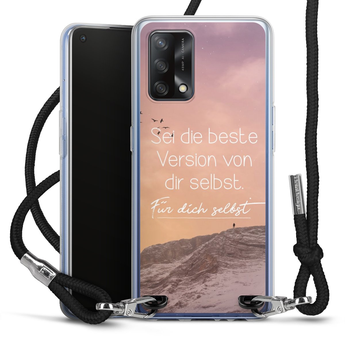 Bei dieser Handyhülle nutzen wir das solide Direktdruck-Verfahren, weshalb der Druckbereich ausschließlich die Rückseite umfasst und der Rand hingegen unbedruckt bleibt. Das Case zum Umhängen kann sowohl unbedruckt, als auch vollflächig oder partiell bedruckt bestellt werden. Wähle für Dein Design entweder eines unserer exklusiven Shop-Motive, oder werde kreativ und gestalte Dein Wunschdesign zum Beispiel mit Fotos und Overlays selbst. Designe Dir Dein persönliches Trend-Accessoire und setze ein individuelles Statement auf den Straßen!
