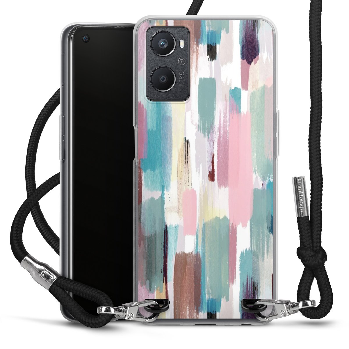 Habe Dein Handy, dank der flexiblen Silikon Handyhülle zum Umhängen mit der Handykette aus Stoff, immer griffbereit.