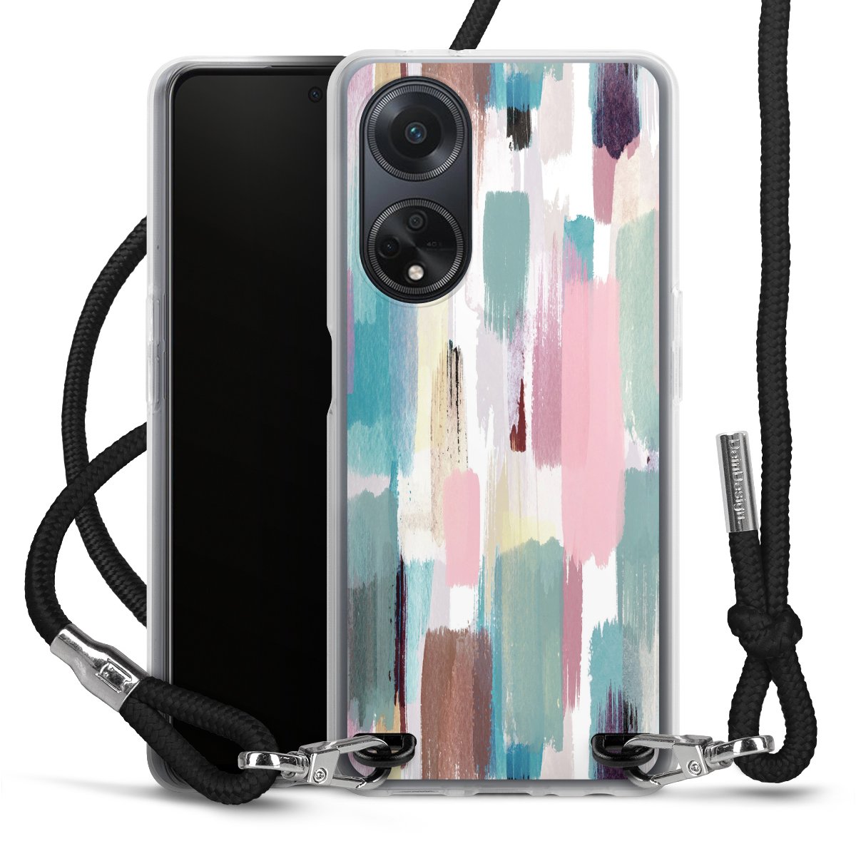 Habe Dein Handy, dank der flexiblen Silikon Handyhülle zum Umhängen mit der Handykette aus Stoff, immer griffbereit.