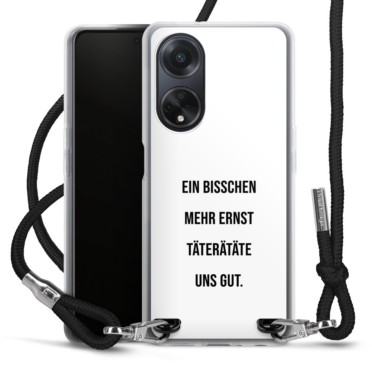 Bei dieser Handyhülle nutzen wir das solide Direktdruck-Verfahren, weshalb der Druckbereich ausschließlich die Rückseite umfasst und der Rand hingegen unbedruckt bleibt. Das Case zum Umhängen kann sowohl unbedruckt, als auch vollflächig oder partiell bedruckt bestellt werden. Wähle für Dein Design entweder eines unserer exklusiven Shop-Motive, oder werde kreativ und gestalte Dein Wunschdesign zum Beispiel mit Fotos und Overlays selbst. Designe Dir Dein persönliches Trend-Accessoire und setze ein individuelles Statement auf den Straßen!