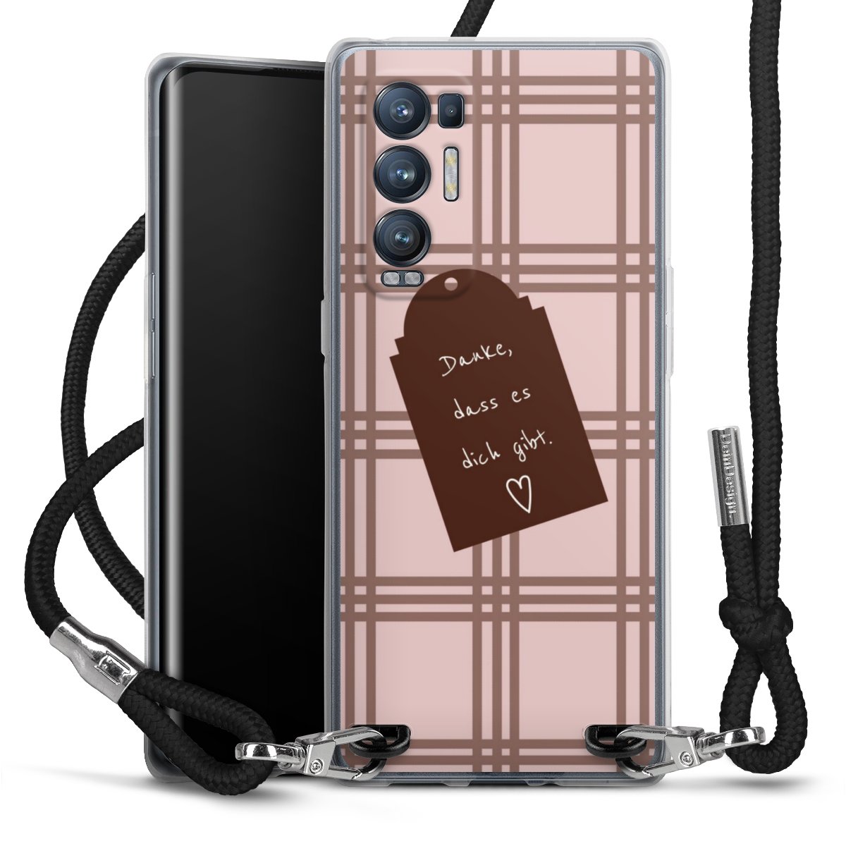 Habe Dein Handy, dank der flexiblen Silikon Handyhülle zum Umhängen mit der Handykette aus Stoff, immer griffbereit.