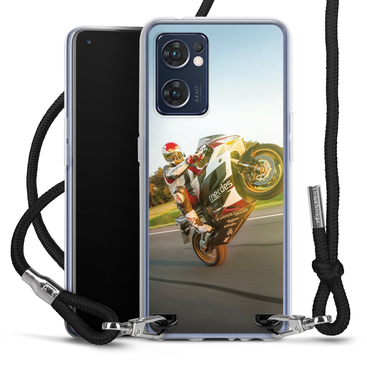 Bei dieser Handyhülle nutzen wir das solide Direktdruck-Verfahren, weshalb der Druckbereich ausschließlich die Rückseite umfasst und der Rand hingegen unbedruckt bleibt. Das Case zum Umhängen kann sowohl unbedruckt, als auch vollflächig oder partiell bedruckt bestellt werden. Wähle für Dein Design entweder eines unserer exklusiven Shop-Motive, oder werde kreativ und gestalte Dein Wunschdesign zum Beispiel mit Fotos und Overlays selbst. Designe Dir Dein persönliches Trend-Accessoire und setze ein individuelles Statement auf den Straßen!