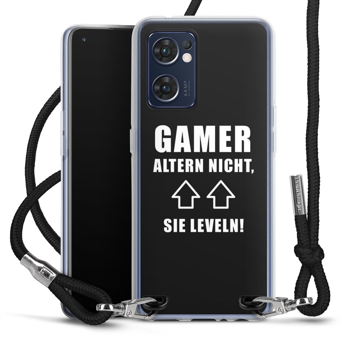 Habe Dein Handy, dank der flexiblen Silikon Handyhülle zum Umhängen mit der Handykette aus Stoff, immer griffbereit.