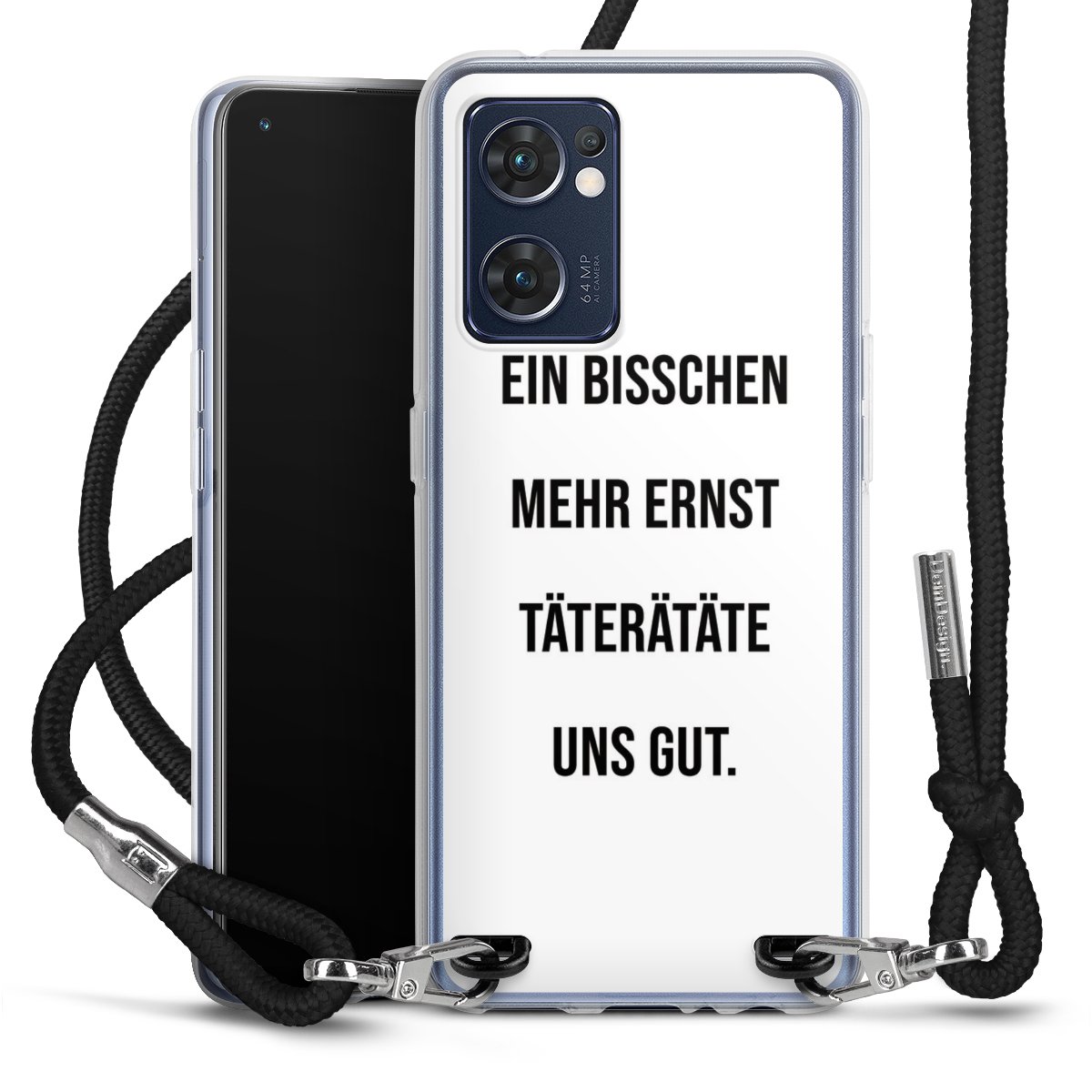 Habe Dein Handy, dank der flexiblen Silikon Handyhülle zum Umhängen mit der Handykette aus Stoff, immer griffbereit.