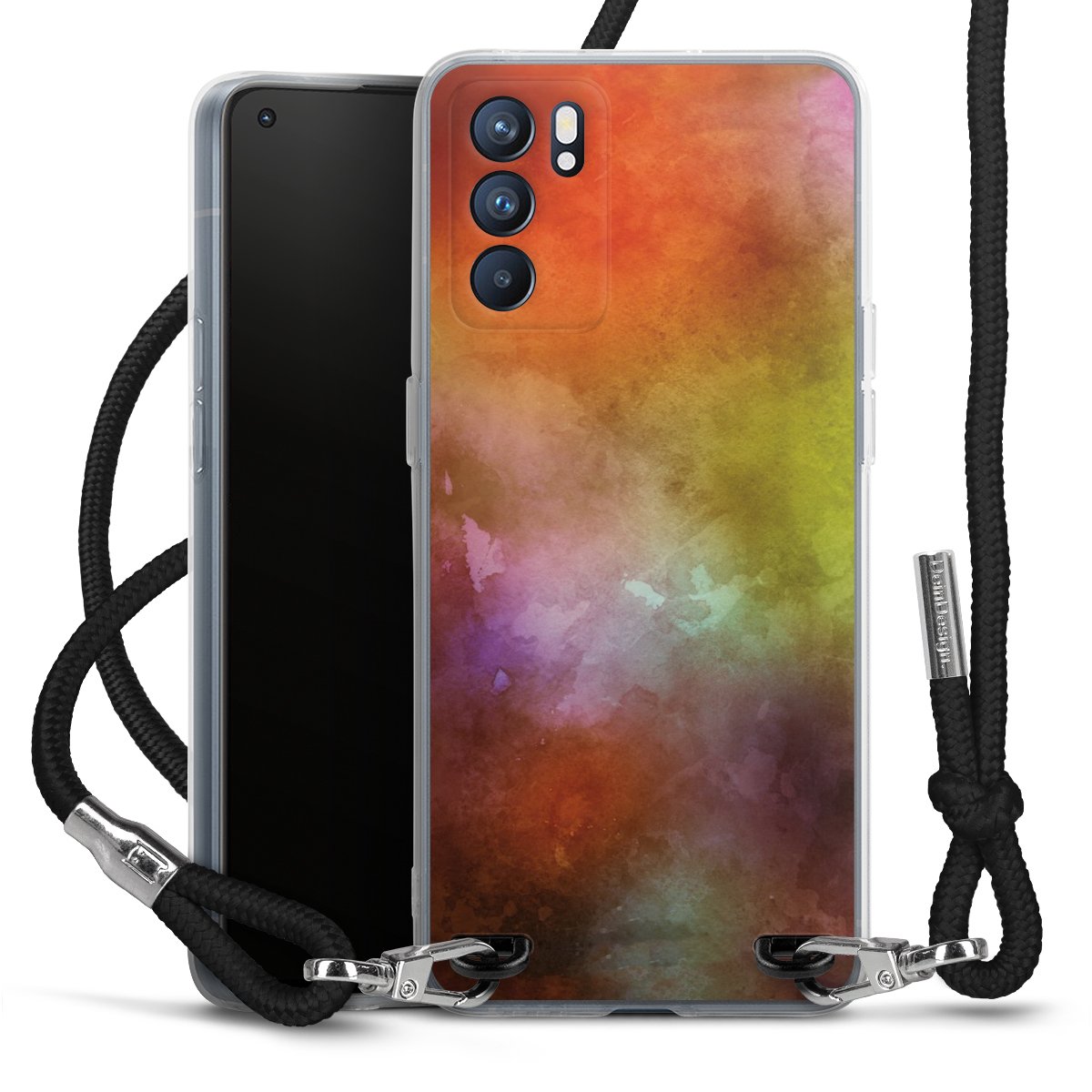 Habe Dein Handy, dank der flexiblen Silikon Handyhülle zum Umhängen mit der Handykette aus Stoff, immer griffbereit.