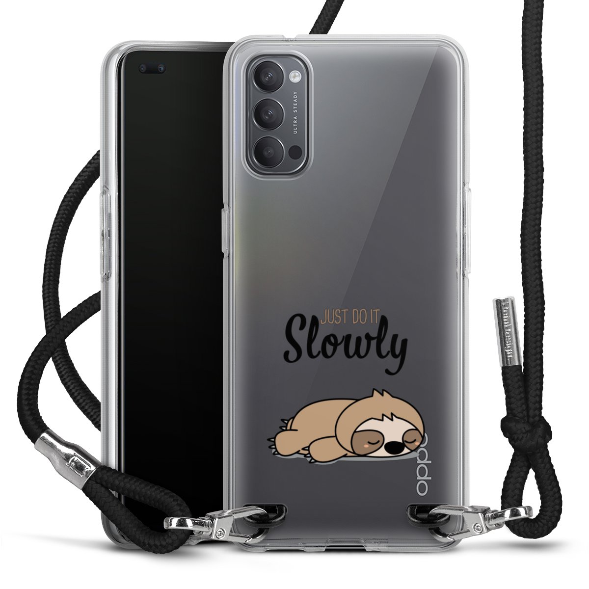 Habe Dein Handy, dank der flexiblen Silikon Handyhülle zum Umhängen mit der Handykette aus Stoff, immer griffbereit.