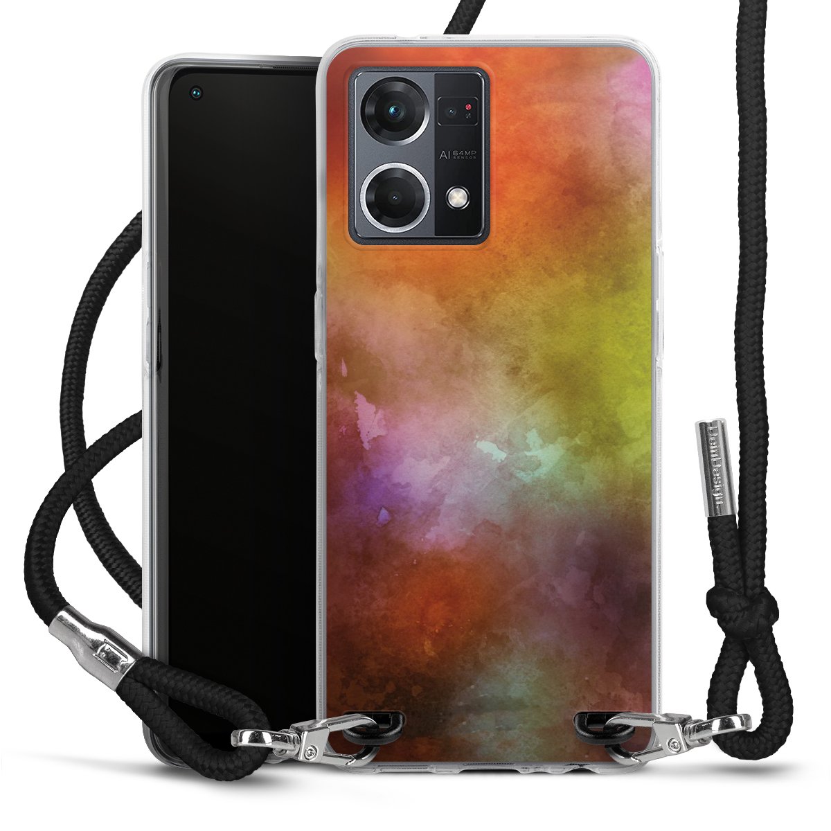 Habe Dein Handy, dank der flexiblen Silikon Handyhülle zum Umhängen mit der Handykette aus Stoff, immer griffbereit.