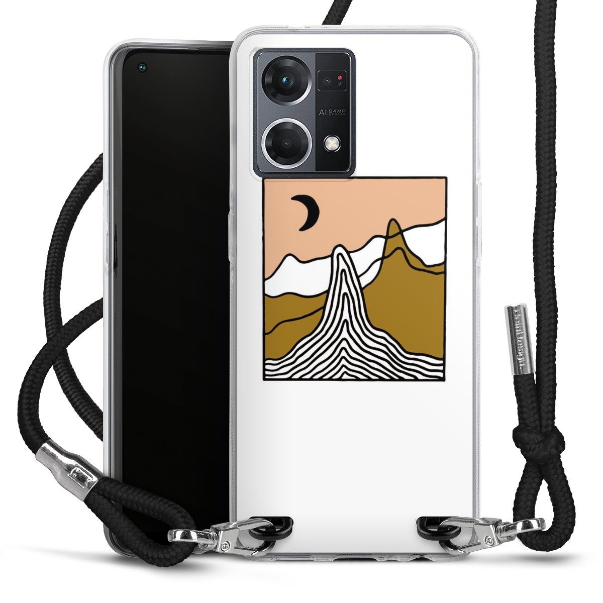 Bei dieser Handyhülle nutzen wir das solide Direktdruck-Verfahren, weshalb der Druckbereich ausschließlich die Rückseite umfasst und der Rand hingegen unbedruckt bleibt. Das Case zum Umhängen kann sowohl unbedruckt, als auch vollflächig oder partiell bedruckt bestellt werden. Wähle für Dein Design entweder eines unserer exklusiven Shop-Motive, oder werde kreativ und gestalte Dein Wunschdesign zum Beispiel mit Fotos und Overlays selbst. Designe Dir Dein persönliches Trend-Accessoire und setze ein individuelles Statement auf den Straßen!