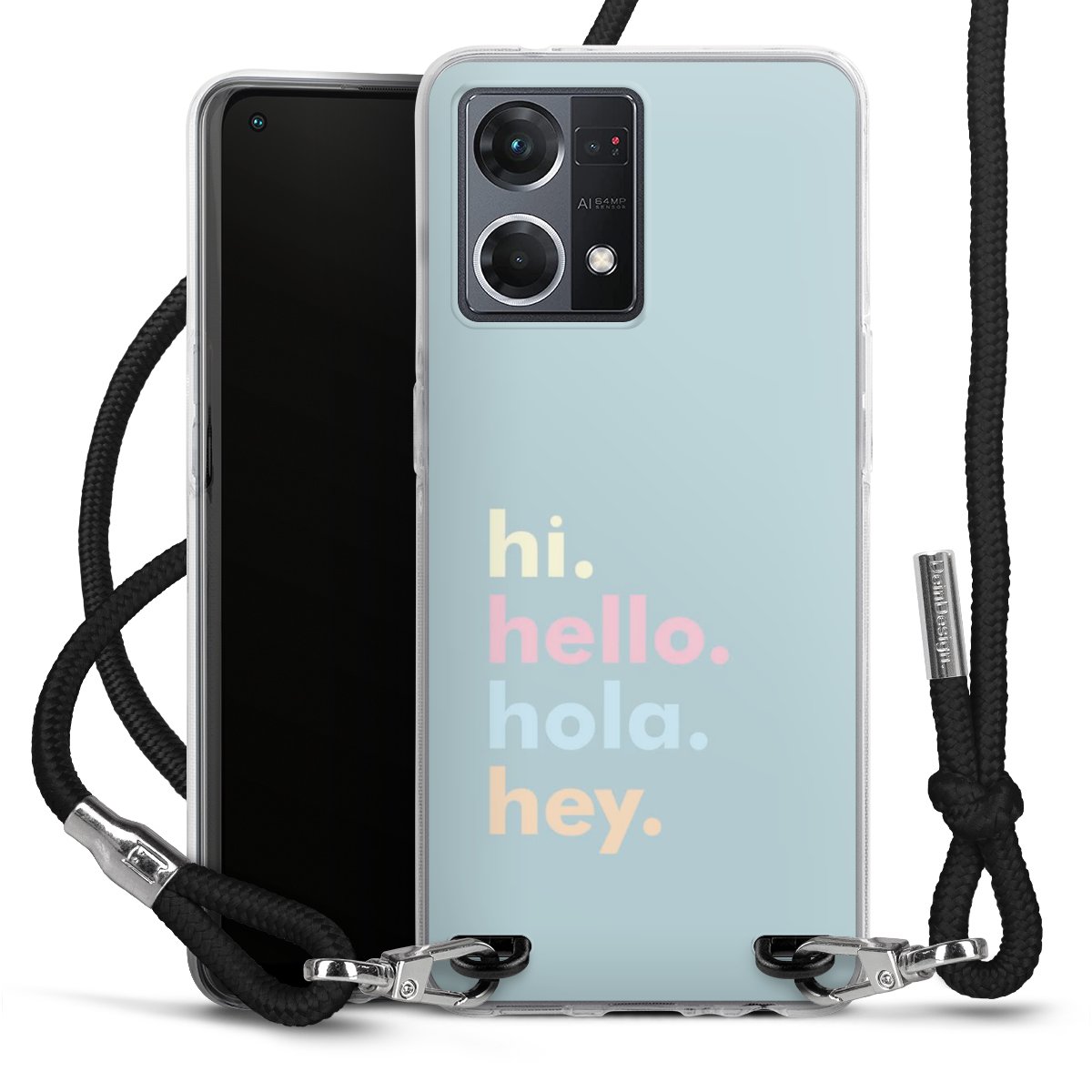 Habe Dein Handy, dank der flexiblen Silikon Handyhülle zum Umhängen mit der Handykette aus Stoff, immer griffbereit.