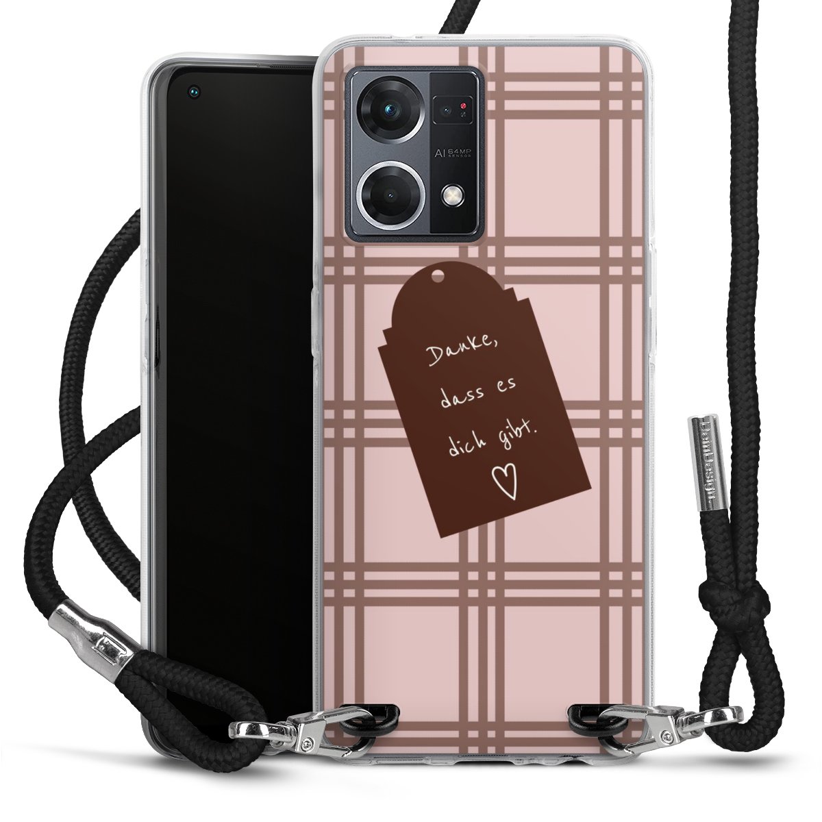 Habe Dein Handy, dank der flexiblen Silikon Handyhülle zum Umhängen mit der Handykette aus Stoff, immer griffbereit.