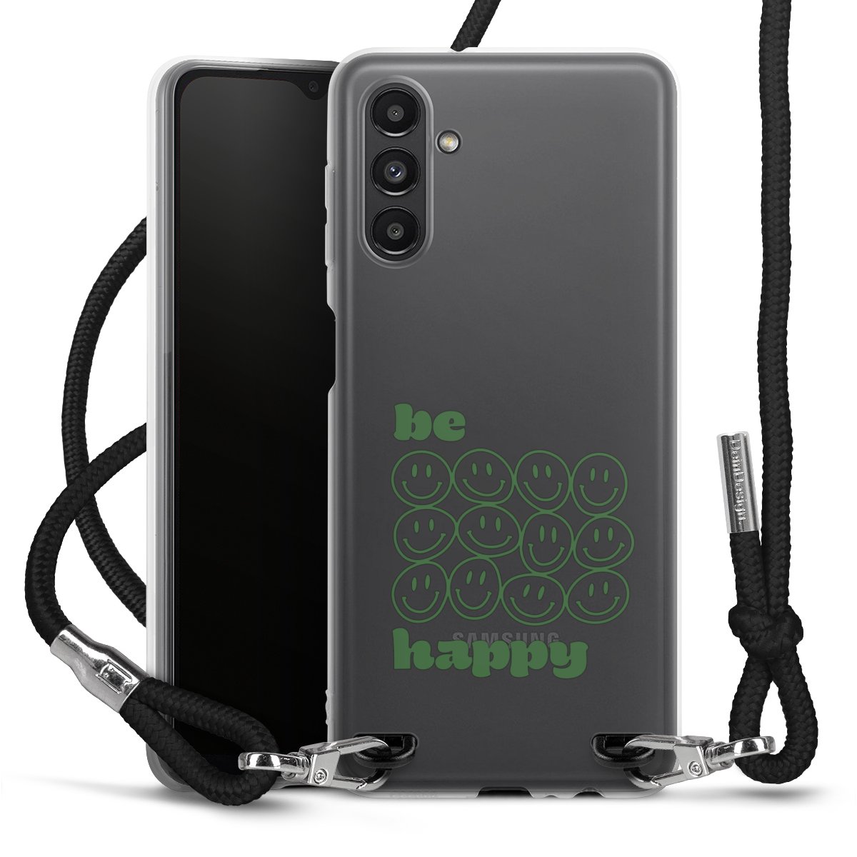 Bei dieser Handyhülle nutzen wir das solide Direktdruck-Verfahren, weshalb der Druckbereich ausschließlich die Rückseite umfasst und der Rand hingegen unbedruckt bleibt. Das Case zum Umhängen kann sowohl unbedruckt, als auch vollflächig oder partiell bedruckt bestellt werden. Wähle für Dein Design entweder eines unserer exklusiven Shop-Motive, oder werde kreativ und gestalte Dein Wunschdesign zum Beispiel mit Fotos und Overlays selbst. Designe Dir Dein persönliches Trend-Accessoire und setze ein individuelles Statement auf den Straßen!