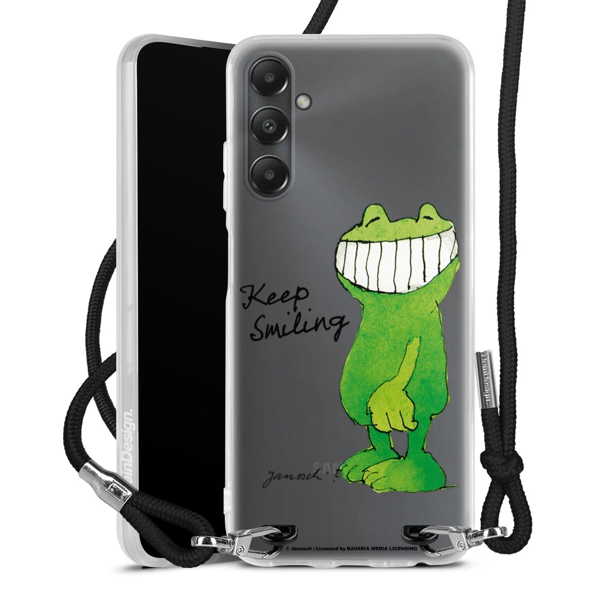 Habe Dein Handy, dank der flexiblen Silikon Handyhülle zum Umhängen mit der Handykette aus Stoff, immer griffbereit.