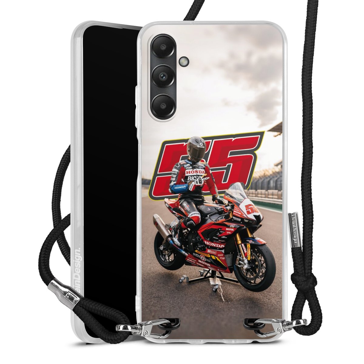 Bei dieser Handyhülle nutzen wir das solide Direktdruck-Verfahren, weshalb der Druckbereich ausschließlich die Rückseite umfasst und der Rand hingegen unbedruckt bleibt. Das Case zum Umhängen kann sowohl unbedruckt, als auch vollflächig oder partiell bedruckt bestellt werden. Wähle für Dein Design entweder eines unserer exklusiven Shop-Motive, oder werde kreativ und gestalte Dein Wunschdesign zum Beispiel mit Fotos und Overlays selbst. Designe Dir Dein persönliches Trend-Accessoire und setze ein individuelles Statement auf den Straßen!