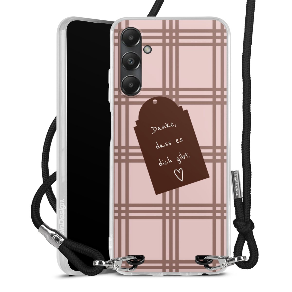 Habe Dein Handy, dank der flexiblen Silikon Handyhülle zum Umhängen mit der Handykette aus Stoff, immer griffbereit.