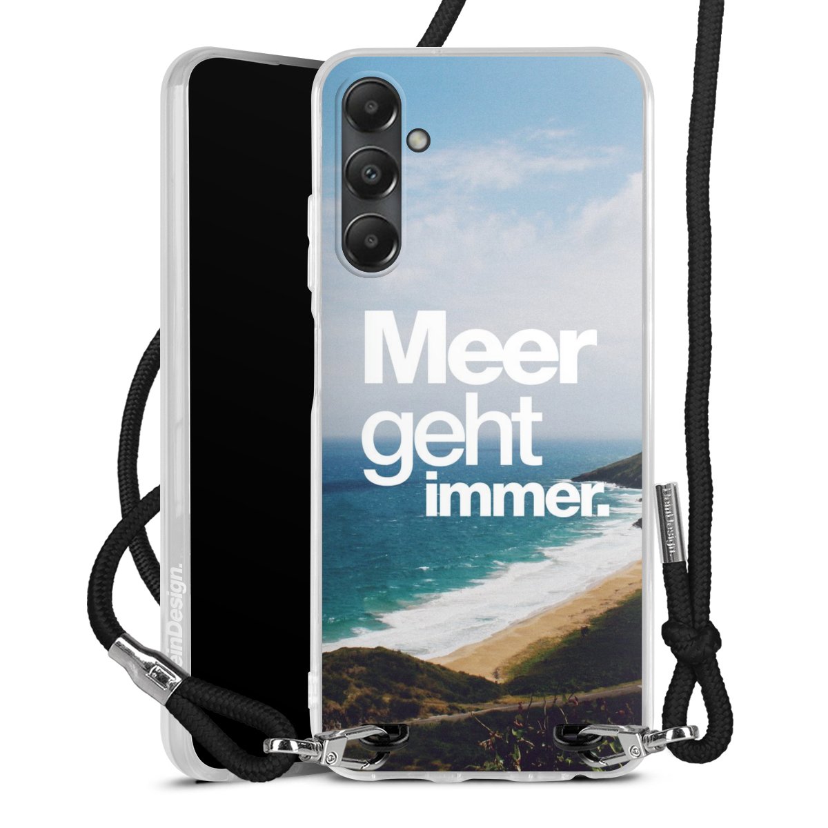 Bei dieser Handyhülle nutzen wir das solide Direktdruck-Verfahren, weshalb der Druckbereich ausschließlich die Rückseite umfasst und der Rand hingegen unbedruckt bleibt. Das Case zum Umhängen kann sowohl unbedruckt, als auch vollflächig oder partiell bedruckt bestellt werden. Wähle für Dein Design entweder eines unserer exklusiven Shop-Motive, oder werde kreativ und gestalte Dein Wunschdesign zum Beispiel mit Fotos und Overlays selbst. Designe Dir Dein persönliches Trend-Accessoire und setze ein individuelles Statement auf den Straßen!