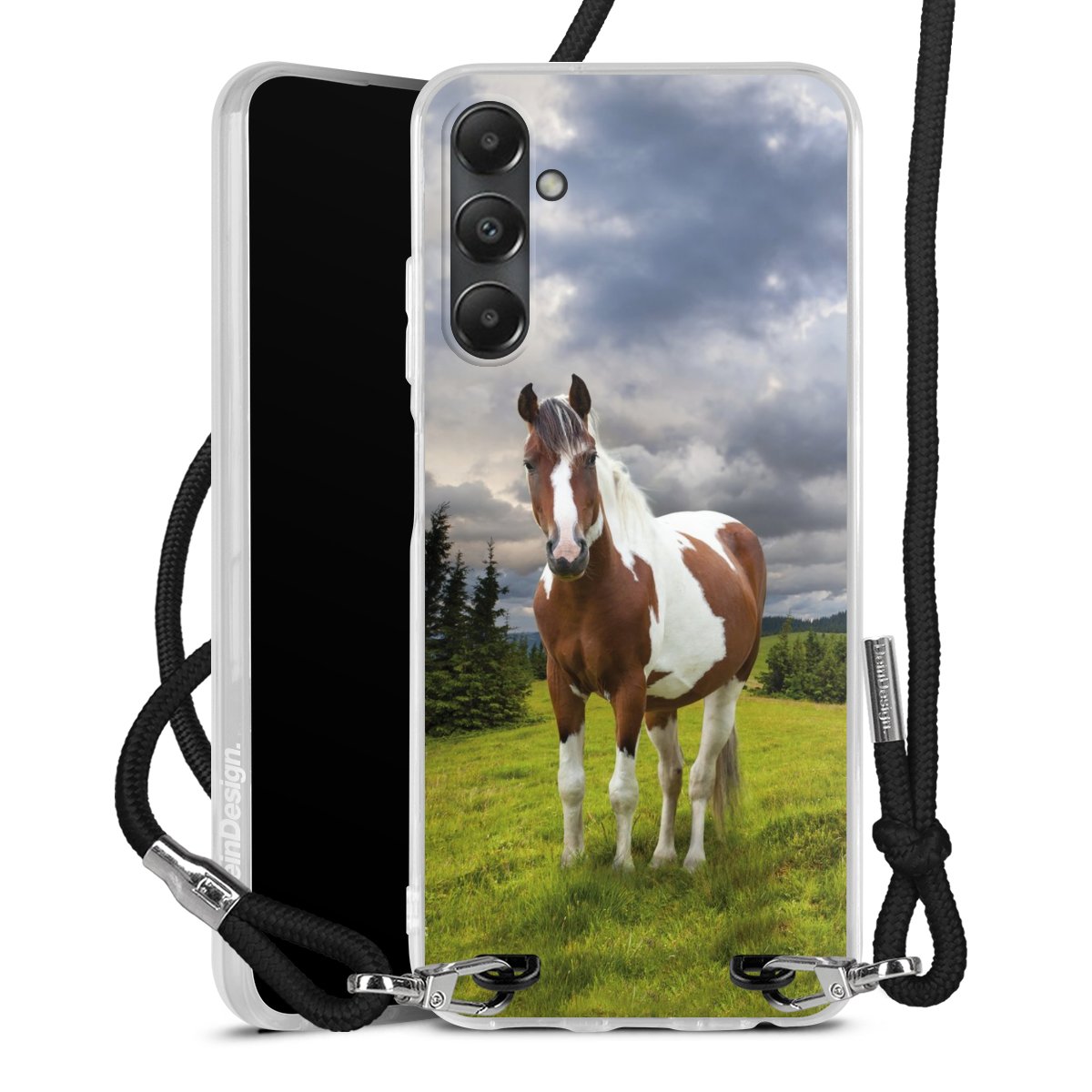 Bei dieser Handyhülle nutzen wir das solide Direktdruck-Verfahren, weshalb der Druckbereich ausschließlich die Rückseite umfasst und der Rand hingegen unbedruckt bleibt. Das Case zum Umhängen kann sowohl unbedruckt, als auch vollflächig oder partiell bedruckt bestellt werden. Wähle für Dein Design entweder eines unserer exklusiven Shop-Motive, oder werde kreativ und gestalte Dein Wunschdesign zum Beispiel mit Fotos und Overlays selbst. Designe Dir Dein persönliches Trend-Accessoire und setze ein individuelles Statement auf den Straßen!