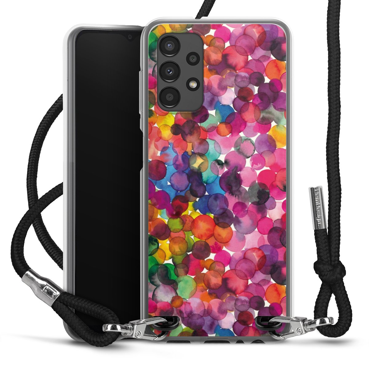 Bei dieser Handyhülle nutzen wir das solide Direktdruck-Verfahren, weshalb der Druckbereich ausschließlich die Rückseite umfasst und der Rand hingegen unbedruckt bleibt. Das Case zum Umhängen kann sowohl unbedruckt, als auch vollflächig oder partiell bedruckt bestellt werden. Wähle für Dein Design entweder eines unserer exklusiven Shop-Motive, oder werde kreativ und gestalte Dein Wunschdesign zum Beispiel mit Fotos und Overlays selbst. Designe Dir Dein persönliches Trend-Accessoire und setze ein individuelles Statement auf den Straßen!