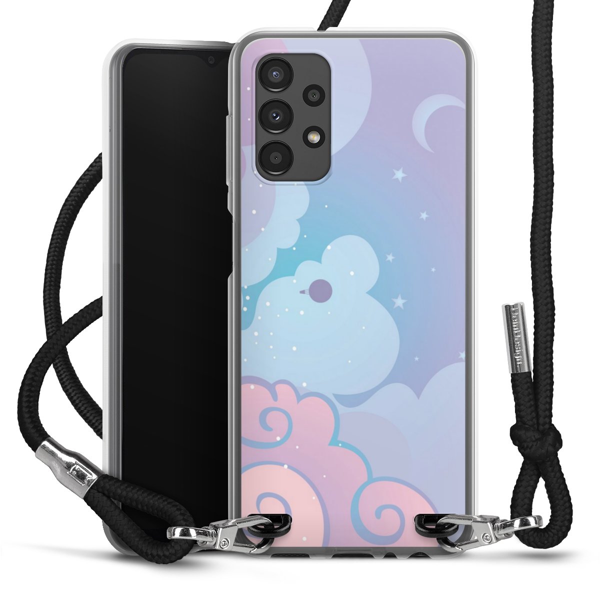 Bei dieser Handyhülle nutzen wir das solide Direktdruck-Verfahren, weshalb der Druckbereich ausschließlich die Rückseite umfasst und der Rand hingegen unbedruckt bleibt. Das Case zum Umhängen kann sowohl unbedruckt, als auch vollflächig oder partiell bedruckt bestellt werden. Wähle für Dein Design entweder eines unserer exklusiven Shop-Motive, oder werde kreativ und gestalte Dein Wunschdesign zum Beispiel mit Fotos und Overlays selbst. Designe Dir Dein persönliches Trend-Accessoire und setze ein individuelles Statement auf den Straßen!