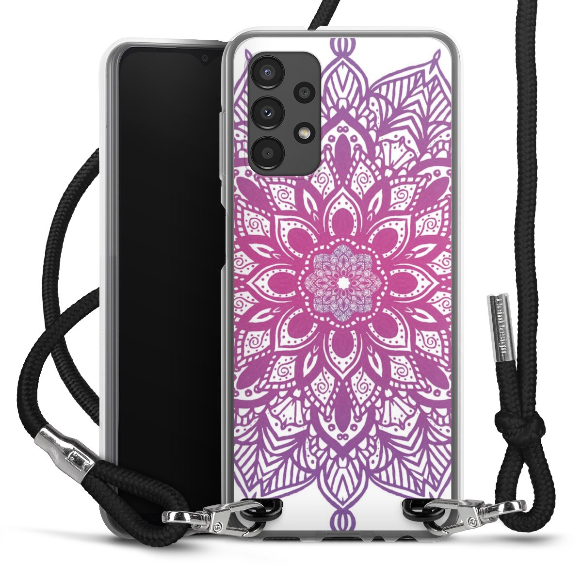 Bei dieser Handyhülle nutzen wir das solide Direktdruck-Verfahren, weshalb der Druckbereich ausschließlich die Rückseite umfasst und der Rand hingegen unbedruckt bleibt. Das Case zum Umhängen kann sowohl unbedruckt, als auch vollflächig oder partiell bedruckt bestellt werden. Wähle für Dein Design entweder eines unserer exklusiven Shop-Motive, oder werde kreativ und gestalte Dein Wunschdesign zum Beispiel mit Fotos und Overlays selbst. Designe Dir Dein persönliches Trend-Accessoire und setze ein individuelles Statement auf den Straßen!