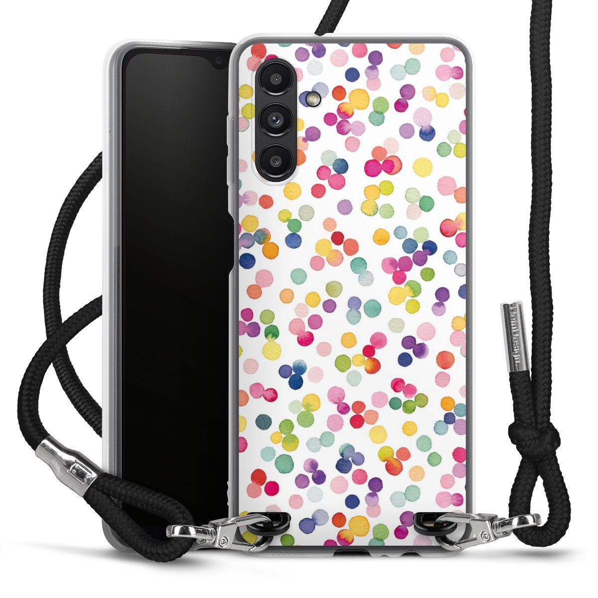 Bei dieser Handyhülle nutzen wir das solide Direktdruck-Verfahren, weshalb der Druckbereich ausschließlich die Rückseite umfasst und der Rand hingegen unbedruckt bleibt. Das Case zum Umhängen kann sowohl unbedruckt, als auch vollflächig oder partiell bedruckt bestellt werden. Wähle für Dein Design entweder eines unserer exklusiven Shop-Motive, oder werde kreativ und gestalte Dein Wunschdesign zum Beispiel mit Fotos und Overlays selbst. Designe Dir Dein persönliches Trend-Accessoire und setze ein individuelles Statement auf den Straßen!
