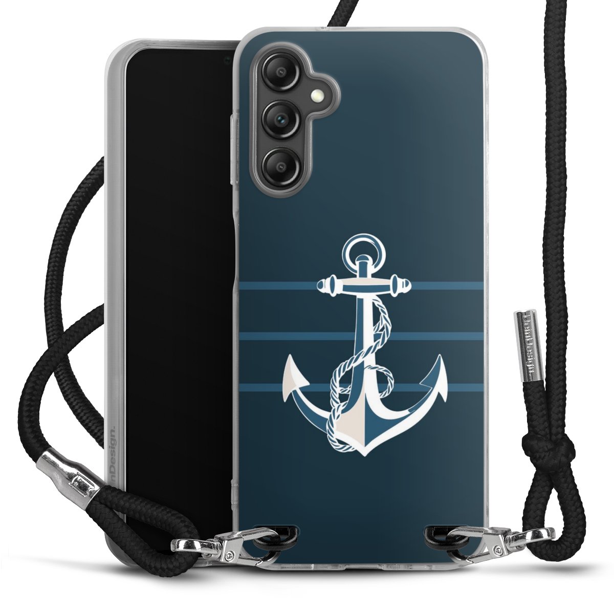 Habe Dein Handy, dank der flexiblen Silikon Handyhülle zum Umhängen mit der Handykette aus Stoff, immer griffbereit.