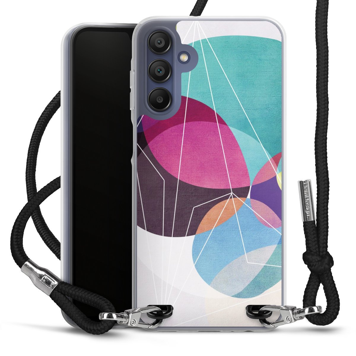 Bei dieser Handyhülle nutzen wir das solide Direktdruck-Verfahren, weshalb der Druckbereich ausschließlich die Rückseite umfasst und der Rand hingegen unbedruckt bleibt. Das Case zum Umhängen kann sowohl unbedruckt, als auch vollflächig oder partiell bedruckt bestellt werden. Wähle für Dein Design entweder eines unserer exklusiven Shop-Motive, oder werde kreativ und gestalte Dein Wunschdesign zum Beispiel mit Fotos und Overlays selbst. Designe Dir Dein persönliches Trend-Accessoire und setze ein individuelles Statement auf den Straßen!