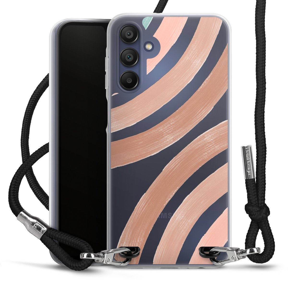 Habe Dein Handy, dank der flexiblen Silikon Handyhülle zum Umhängen mit der Handykette aus Stoff, immer griffbereit.