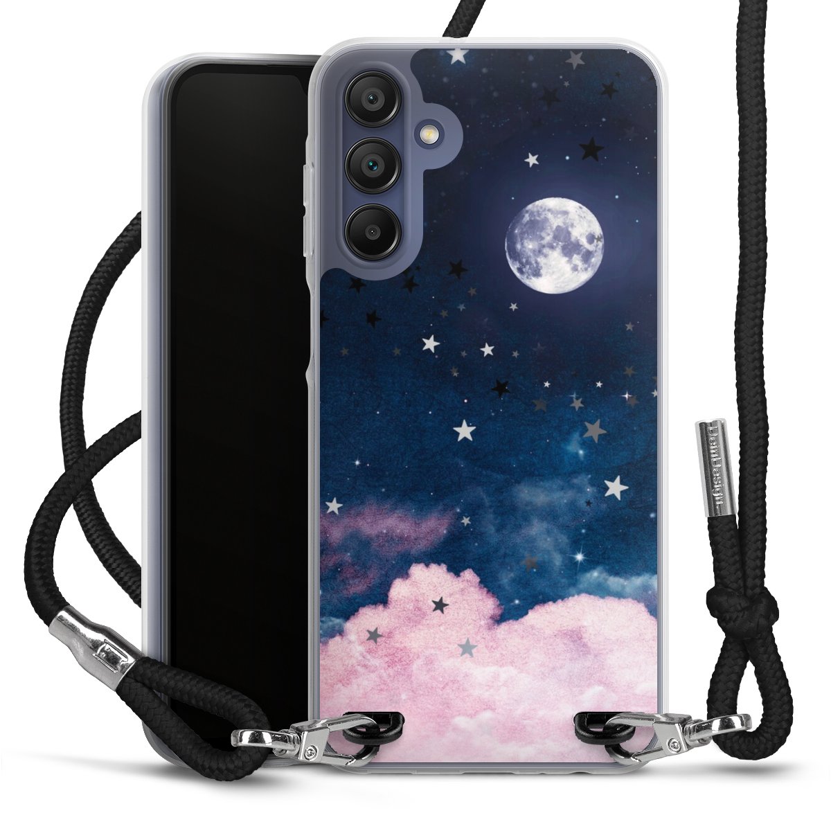 Bei dieser Handyhülle nutzen wir das solide Direktdruck-Verfahren, weshalb der Druckbereich ausschließlich die Rückseite umfasst und der Rand hingegen unbedruckt bleibt. Das Case zum Umhängen kann sowohl unbedruckt, als auch vollflächig oder partiell bedruckt bestellt werden. Wähle für Dein Design entweder eines unserer exklusiven Shop-Motive, oder werde kreativ und gestalte Dein Wunschdesign zum Beispiel mit Fotos und Overlays selbst. Designe Dir Dein persönliches Trend-Accessoire und setze ein individuelles Statement auf den Straßen!